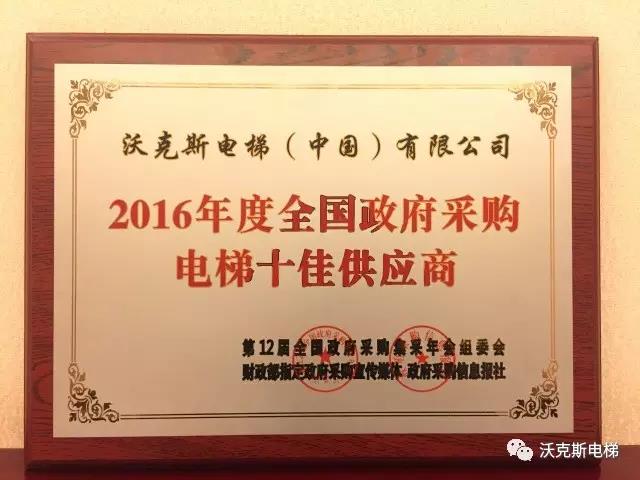 沃克斯亚搏在线(中国)荣获“2016年度全国政府采购十佳亚搏在线(中国)